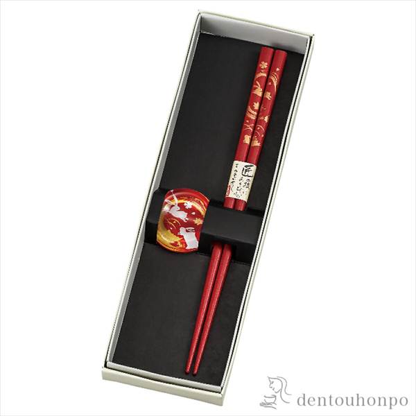 箸/箸置きセット 花うさぎ 赤 2種セット ( 退職祝い 定年 おしゃれ 食器 カトラリー シンプル おすすめ 山中漆器 結婚 出産 )