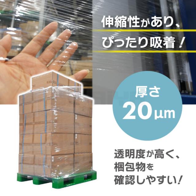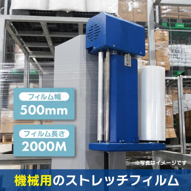 ストレッチフィルム 機械用 厚さ20ミクロン 幅500mm×2000m巻 1箱(1本入)単品 梱包機 梱包 透明 養生 資材 KIKAIYA