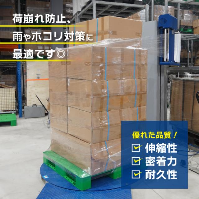 伸縮性があり、ぴったり吸着!機械用のストレッチフィルム ●厚み、長さのある機械用のストレッチフィルムです ●透明度が高く、梱包物が確認し易くなっています ●伸縮性があり、ぴったり吸着するので荷崩れ防止にも最適です ●耐久性があるので、ホコリや水よけなどの商品保護にもご利用いただけます ●梱包物の形を選ぶことなく、大型で高さのある梱包も可能です 関連アイテムはこちらをクリック 品番:FILM-5L |