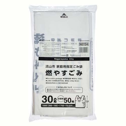 ジャパックス 流山市 指定 ゴミ袋 白半透明 30L 手付き 可燃ごみ用 NGY04(50枚入)[ゴミ袋]