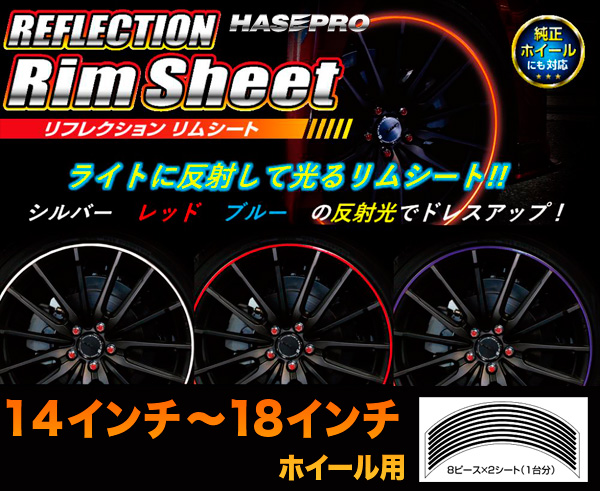 リフレクション リムシート リムシール ホイール 14インチ・15インチ・16インチ・17インチ・18インチ用 車 3カラー 反射シール/ハセプロ