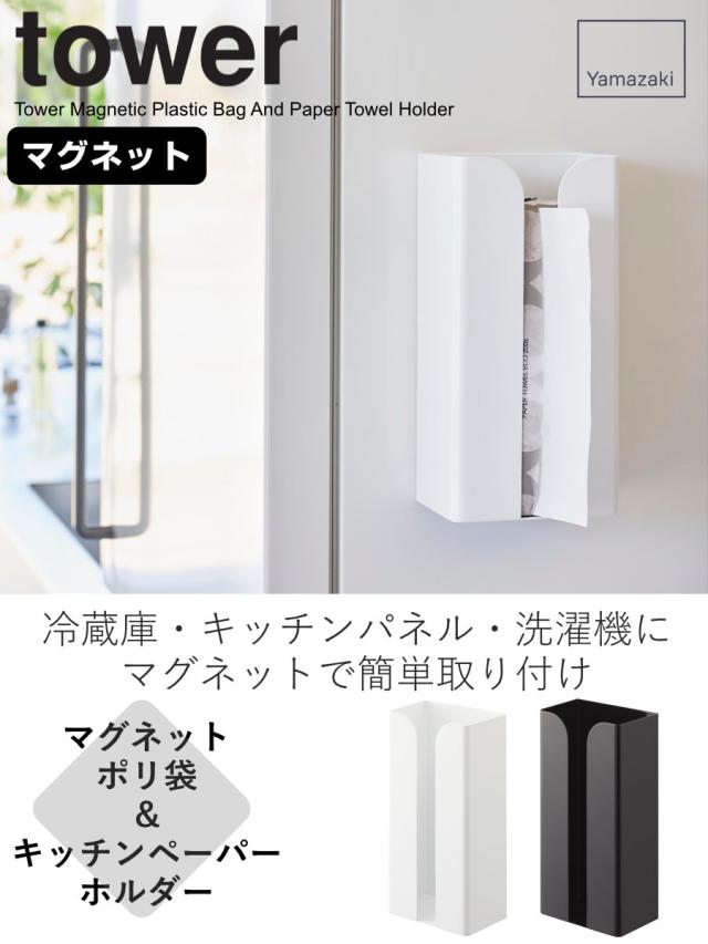 山崎実業 tower マグネットポリ袋&キッチンペーパーホルダー タワー ( 4903208037730 タワーシリーズ マグネット ポリ袋ホルダー キッチンペーパーホルダー 磁石 ポリ袋 キッチンペーパー 収納 ホルダー )