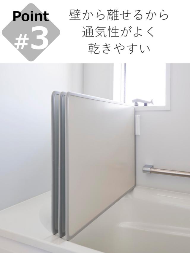 通常の風呂蓋スタンドとは違い、壁から離して設置できるので風通しが良くより乾きやすいです。