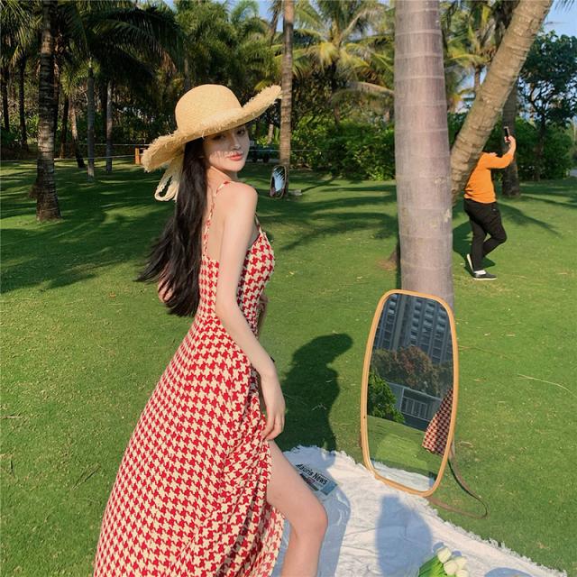 キャミワンピース レディース 夏 千鳥格子柄 キャミソールワンピース ロングワンピース マキシワンピース きれいめ 春夏 ビーチ