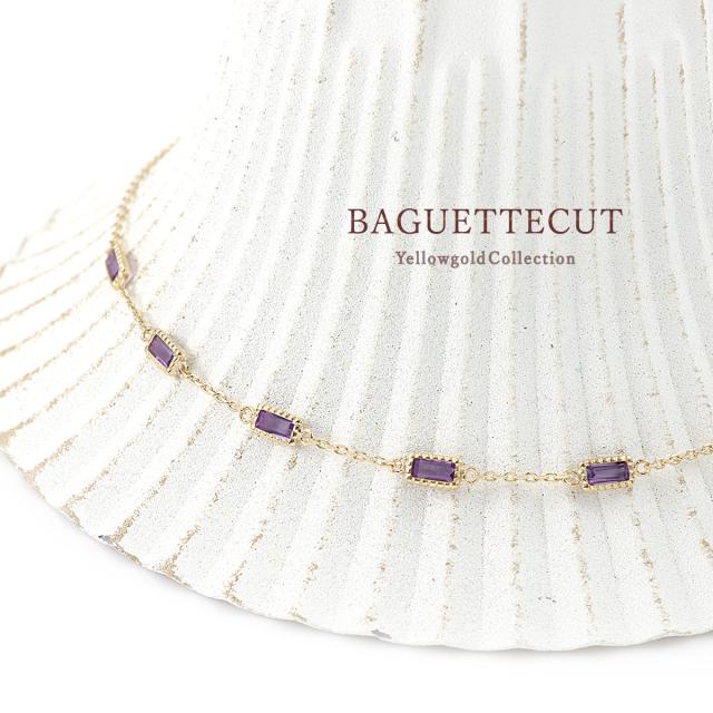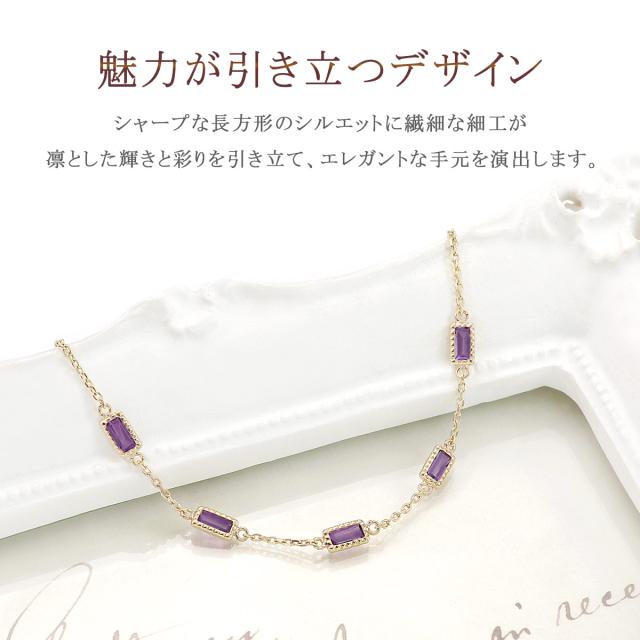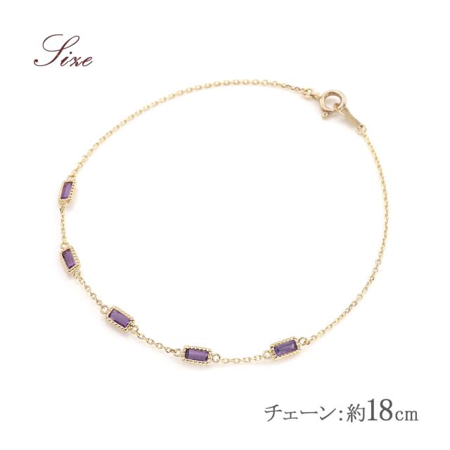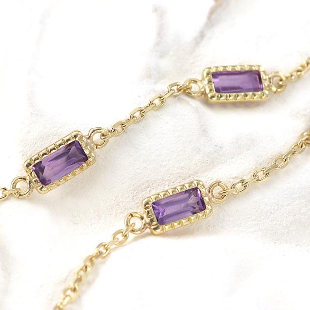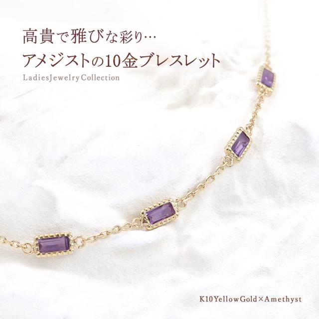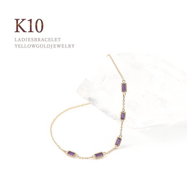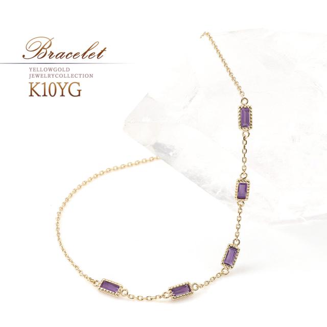 アメジスト ブレスレット おしゃれ 10K ジュエリー 10金 K10 イエローゴールド プレゼント 記念日 お誕生日 ギフト アメシスト 18cm パワーストーン 宝石 華奢 シンプル 女性 彼女 嫁 母 祖母 長方形 バケットカット 紫水晶 紫色 2月 誕生石 本物 天然石 ホワイトデー お返し