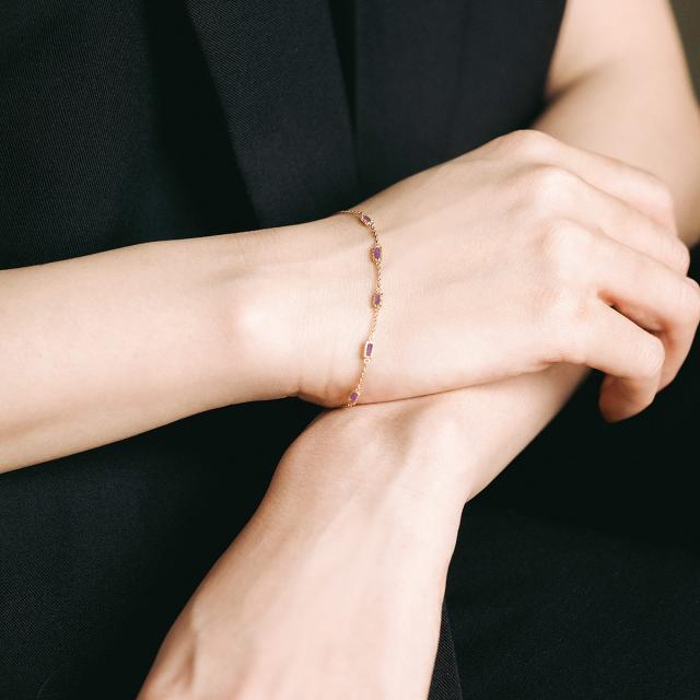 K10イエローゴールドに長方形の宝石がおしゃれなブレスレットです。 2月の誕生石としても有名なアメジストは、石言葉に「心の平和」があり、お守りやパワーストーンとしても人気があります。 合計5石のアメジストの周りにはアンティーク調の装飾が施され、気品ある手元を演出します。。 華奢なので、単体使いはもちろん重ねづけもしやすく、様々なコーディネートやシーンに合わせてお楽しみいただけます。 オシャレの好きな彼女や妻・奥様への記念日の贈り物、娘さんやお友達への誕生日プレゼントにもおすすめです。 ・皆様の笑顔があふれるよう「温かみのあるオレンジ色」のリボンで 綺麗にラッピングいたします。 ・「特別な贈り物」になりますよう真心を込め丁寧にご準備させて頂きます。 (ご不明な点はお気軽にお問合せ下さい。0120-755-888(平日9時〜18時)) |
