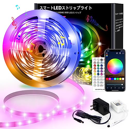 LEDテープライト RGB テープライト5m 30leds/m SMD5050 LEDテープ 両面テープ APP制御 40キーリモコン 音声同期 1600彩り 高輝度RGB LED strip light 間接照明 テープ 切断可能 調光