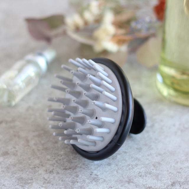 頭皮のマッサージは、ブラシの毛先で毛根を押しながら5mm〜1cm間隔で強めに擦り、少しずつ場所を移動しながら頭皮全体に施します。最後にブラシの先端で頭皮全体を少し強めに叩いてください。