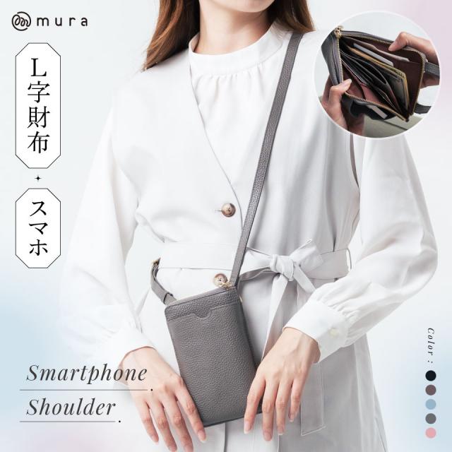 商品名:フルグレイン シュリンクレザー L字ファスナー財布付き スマホショルダー
