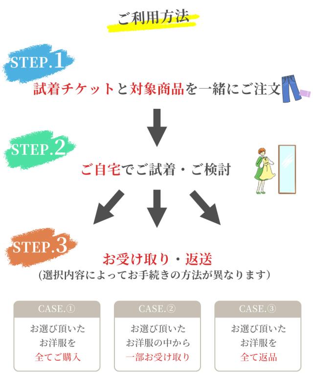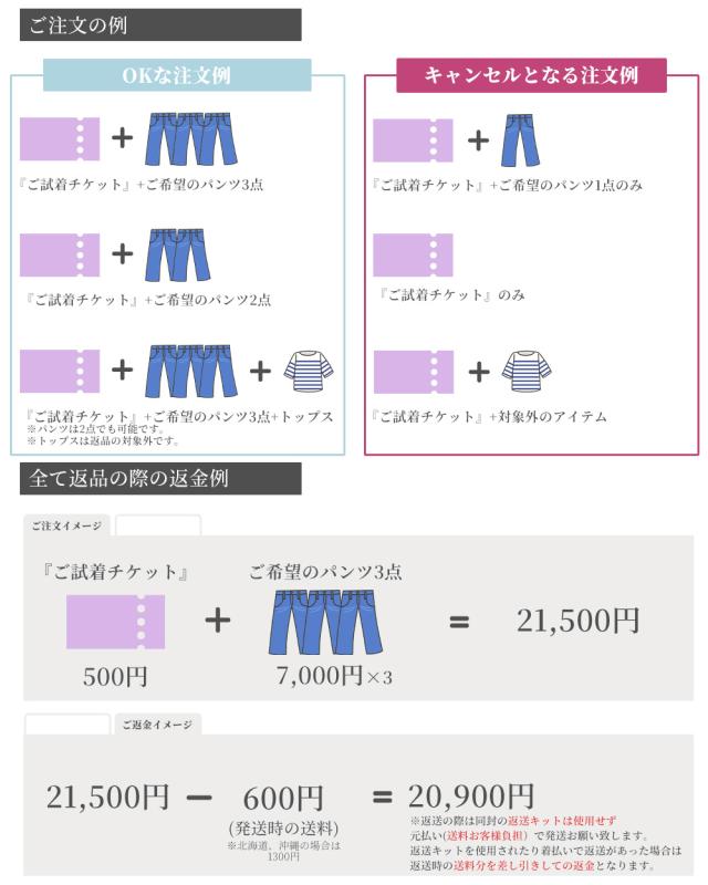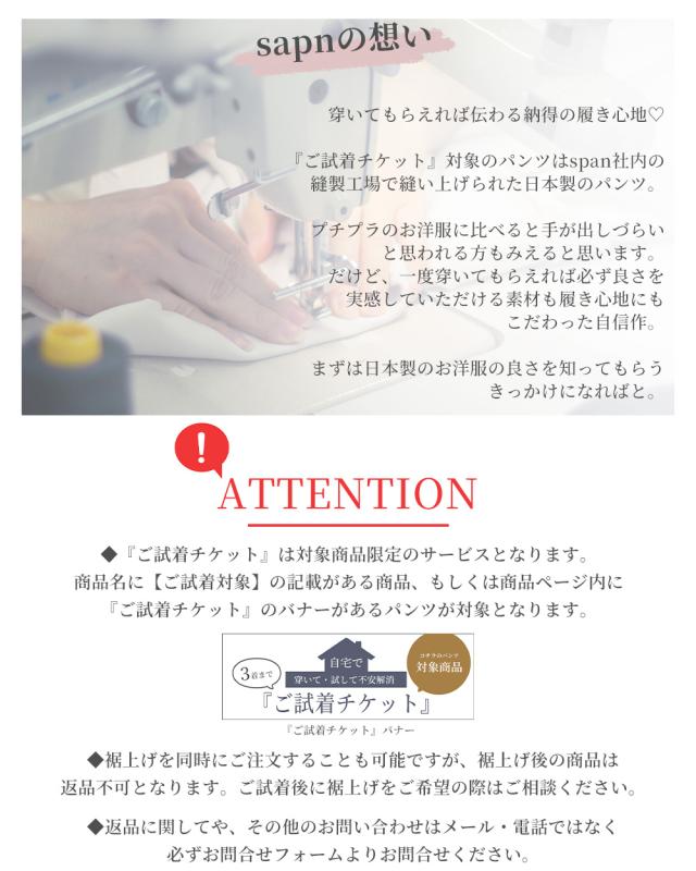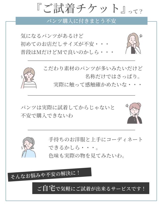 【対象商品限定】ご試着チケット パンツ 3枚まで選べる! ご試着 試着 試着チケット着比べ 試着サービス ご試着サービス 試せる お試し パンツ ズボン ボトムス 日本製 麻 ウール コットン 大きいサイズ 小さいサイズ 穿き比べ