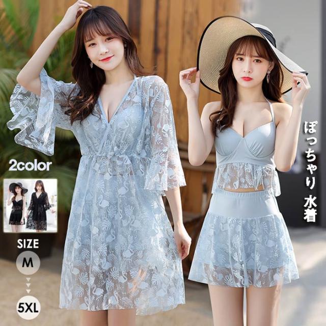 タンキニ水着 トップス付き 3点セット ぽっちゃり 水着 レディース 大きいサイズ セット水着 韓国 ハワイアン ガール 可愛い 痩せ見え 体型カバー ぽっちゃり水着 温泉 ビーチ プール 海 水泳 セクシー オトナ女子 かわいいブラック/グレーdf619c0c0zr