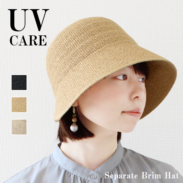 ハット レディース 帽子 春夏 メール便送料無料 UVケア 紫外線対策 uv対策 サイズ調整可 リボン ペーパー コットン 日よけ シンプル おしゃれ モダン つば広 折り畳み 夏 旅行 女性 調節 【Simple Separate Brim Hat】