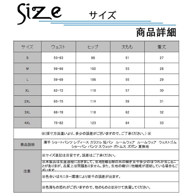 薄手 ショートパンツ レディース カラフル 短パン ルームウェア ルームウェア ウェストゴム ショーパン パンツ スウェット ボト