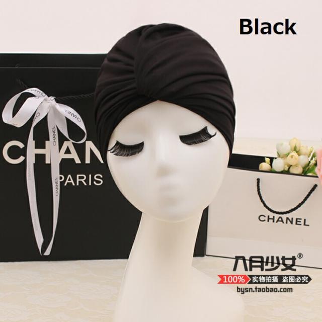 お洒落な ターバン スイムキャップ 【ブラック】 フリーサイズ 水泳帽 夏 海 水泳帽子 ギャザー ジム スポーツ スイミング おしゃれ