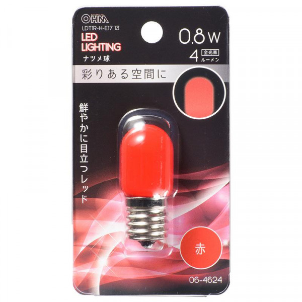OHM LEDナツメ球装飾用 T20/E17/0.8W/4lm/赤色 LDT1R-H-E17 13【メーカー直送】代引き・銀行振込前払い・同梱不可