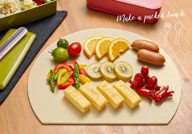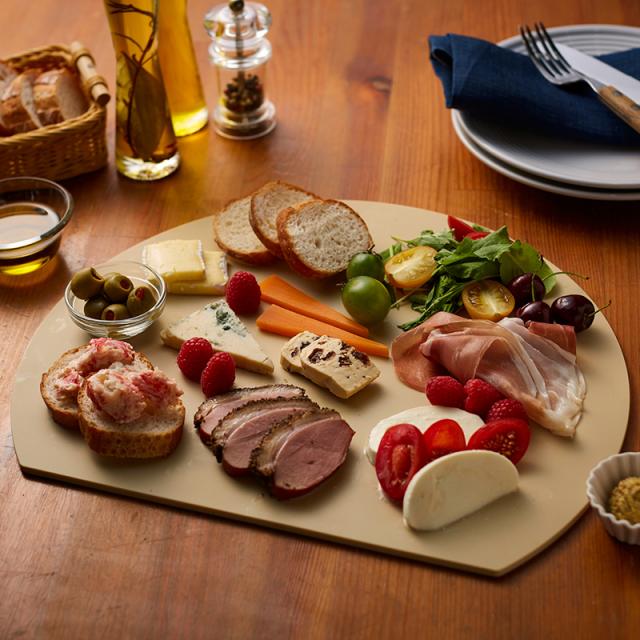 面積が広い丸形だからカットした食材を並べて置けばお皿いらず♪