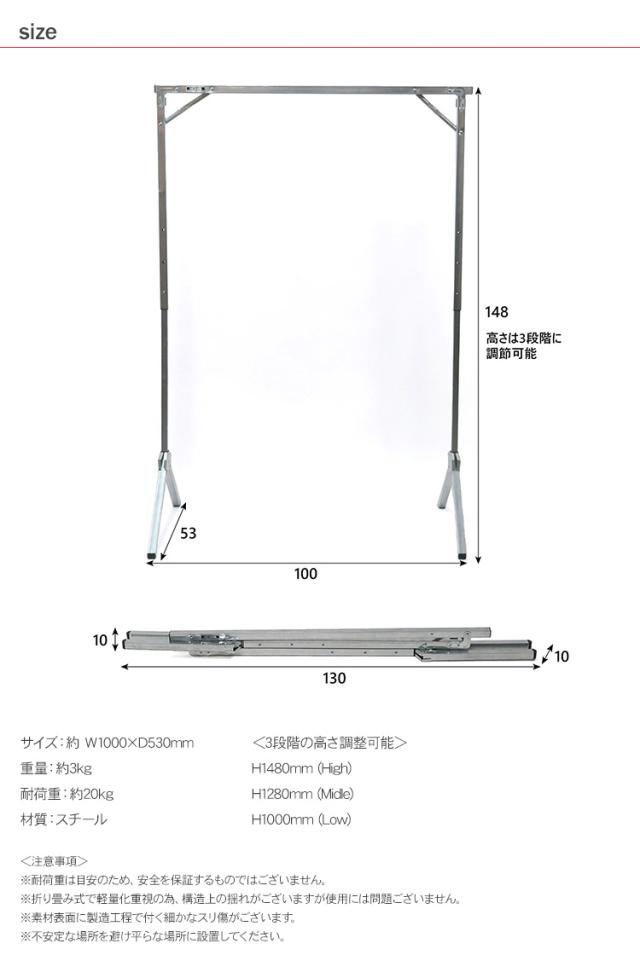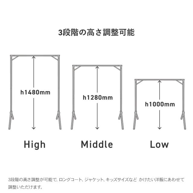 高さ3段階調整可能な折りたたみ式のハンガーラック