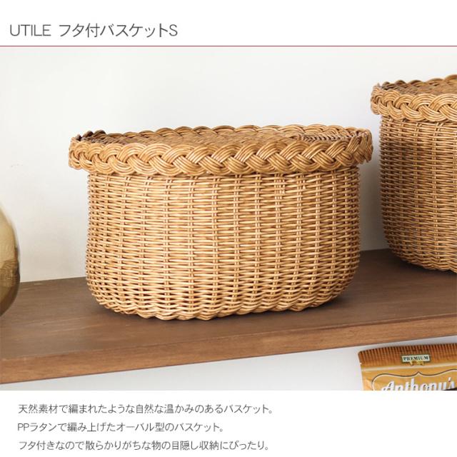 UTILE ユティル フタ付バスケットS 92340043 収納バスケット 収納カゴ 水拭き ランドリー収納 キッチン収納 北欧 おしゃれ ラタン