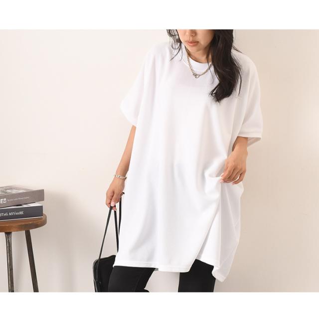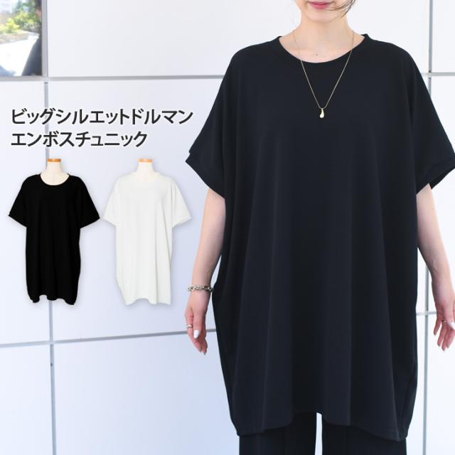 新作 ビッグシルエットドルマンエンボスチュニック レディース トップス Tシャツ 速乾 半袖 ロング丈 ミニワンピース ゆったり 大きめ 大きいサイズ 体型カバー カジュアル ルーズ 無地 旅行 涼しい デイリー 夏