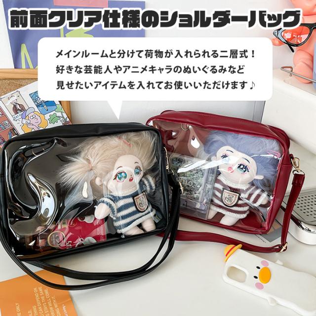 新作 PU ベーシック クリア ショルダーバッグ レディース クリアバッグ ミニショルダー ポシェット 横型 透明 ビニール 肩掛け 斜めがけ ミニ 小さめ 軽量 おしゃれ かわいい 夏 韓国 痛バッグ 痛バ 推し活