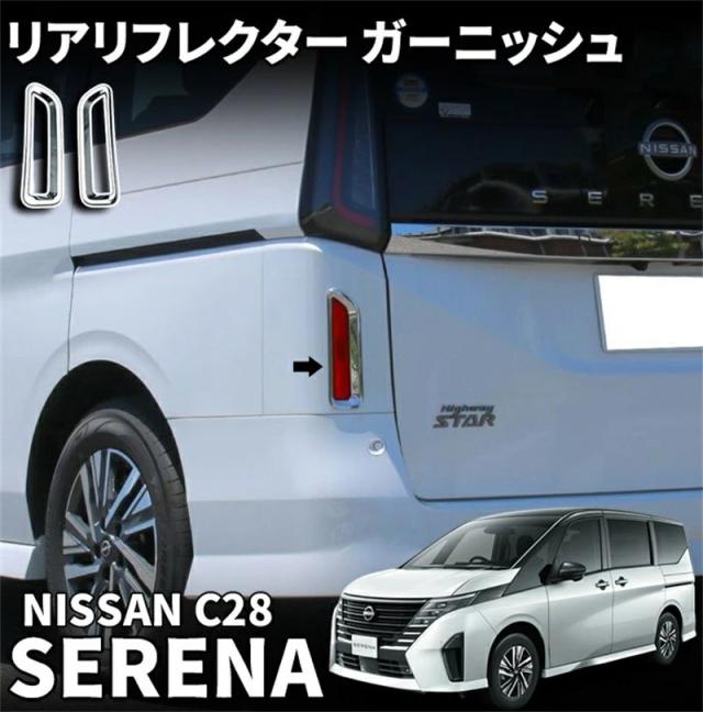 日産 セレナ C28 セレナ e-POWER リアリフレクターガーニッシュ 2P メッキ仕上げ ハイウェイスター専用 カスタム パーツ ドレスアップ アクセサリー