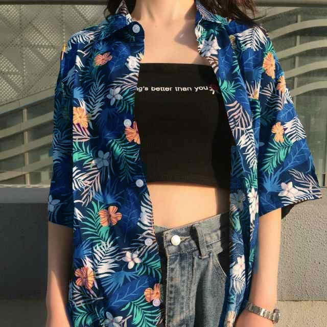 アロハシャツ レディース シャツ ブラウス 半袖 春夏 前開き トップスゆったり 大きいサイズ 総柄 開襟シャツ カジュアル ファション ビーチ 旅行 アウトドア