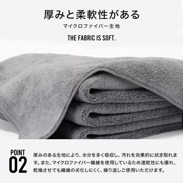 ■厚みと柔軟性があるマイクロファイバー生地で水分を多く吸収し、ヨゴレを効果的に拭き取れます。