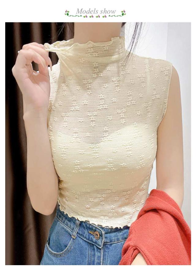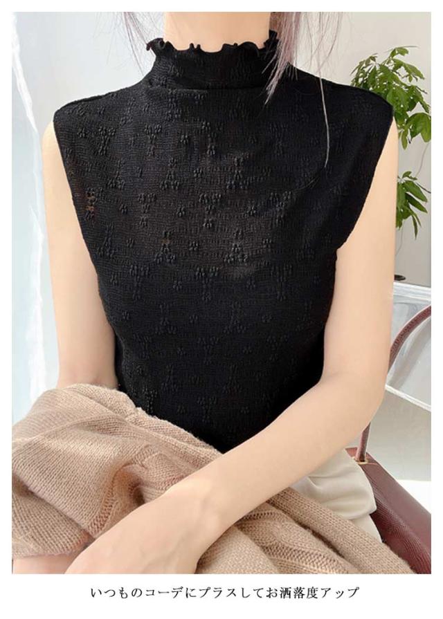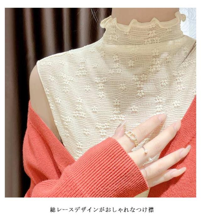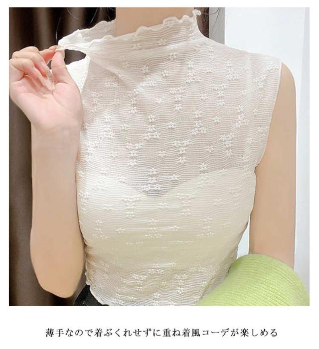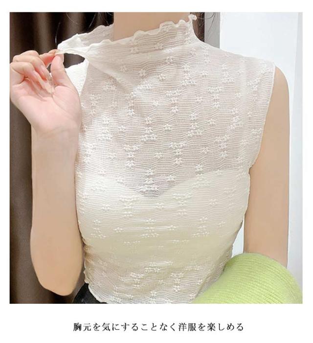 【2枚組】 【送料無料】 つけ襟 付け襟 レディース ハイネック タンクトップ メローネック 花 柄 シースルー トップス シャツ ブラウス カットソー プルオーバー 重ね着用 ノースリーブ 花柄レース フェイクカラー レイヤード