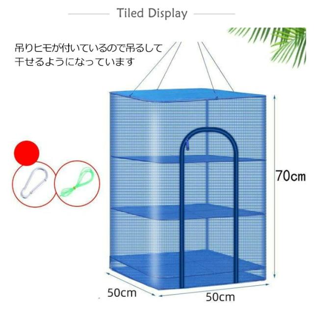 | 全4サイズ!手軽に野菜や魚、果物菜などあらゆる食材が干せる万能干しかご 省スペースでたくさん乾燥できる4段タイプの干しかごです。 太陽の力を借りて美味しい野菜をさらに美味しく旨味が凝縮された、昔ながらの「干し野菜」が簡単に作れます。 メッシュ素材で風通しが良いので、洗った食器の乾燥や収納としてご使用頂けます。 ファスナータイプ・大きな取り出し口デザインで出し入れがラクラク♪ 吊りヒモが付いているので吊るして干せるようになっています。 目が細かいメッシュ生地ので食器や食材などを虫から守ります。 また底部の二重構造でカゴ底面への虫などの接触も防げます。 使わない時は場所をとらずコンパクトに収納できます。 | |