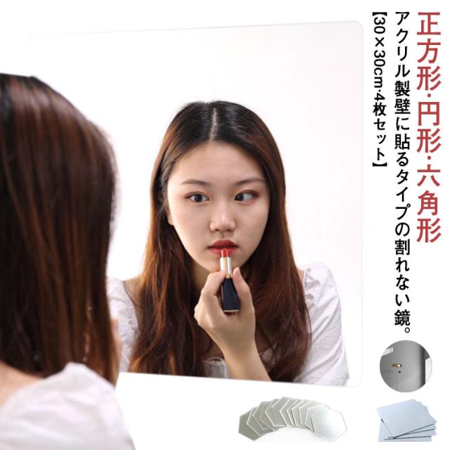 鏡 ミラー シール 30×30cm 4枚 正方形 円形 六角形 貼る鏡 割れない アクリル製 ミラーシール ミラーシート 全身鏡 姿見鏡 壁掛け 玄関 洗面所 トイレ バス 飛散防止 軽量 壁 貼る ウォールミラー ステッカーミラー 剥がせる 賃貸OK おしゃれ