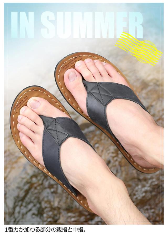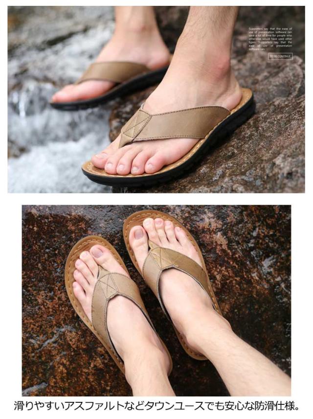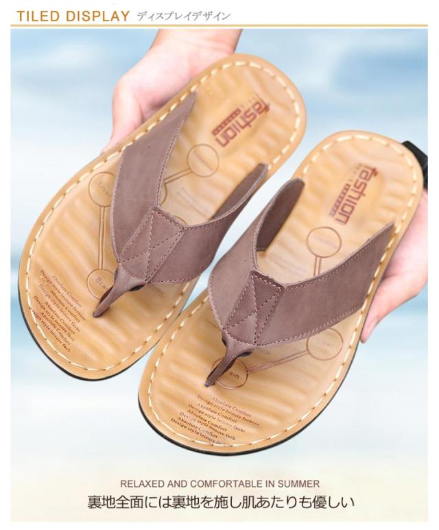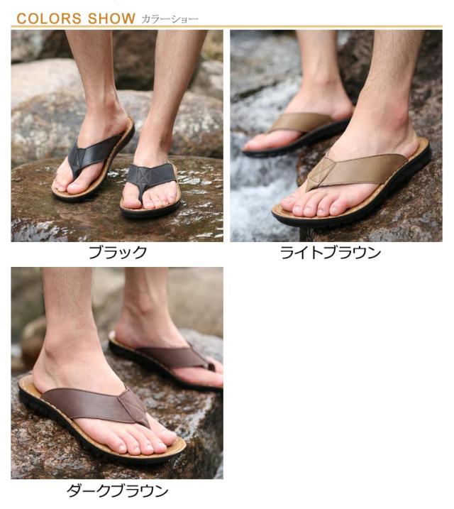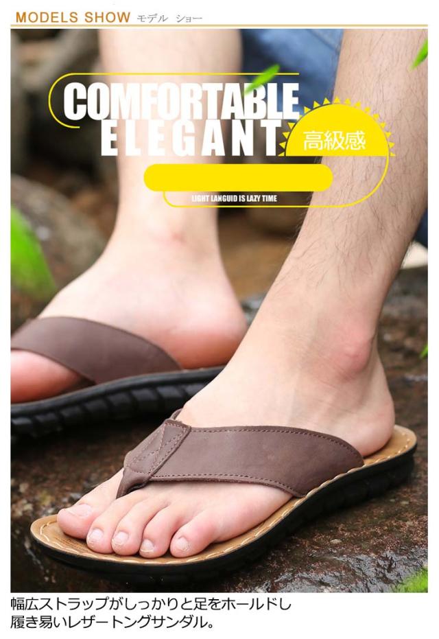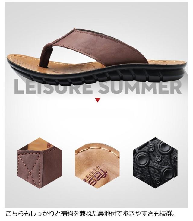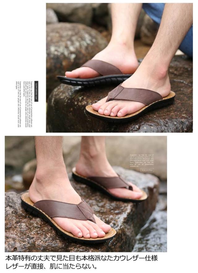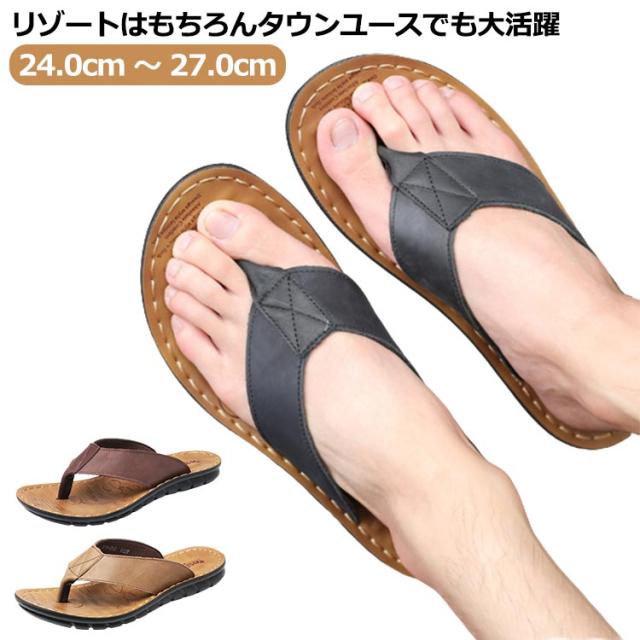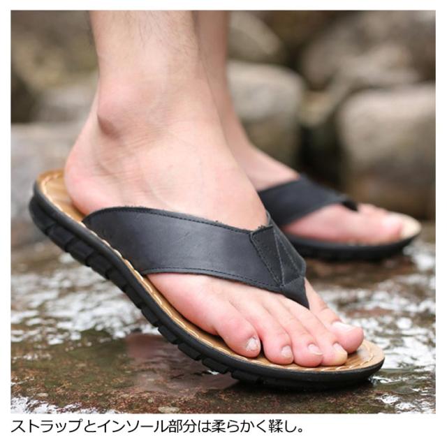 【送料無料】 トング サンダル メンズ トングサンダル レザー ビーチサンダル リアルレザー 革 本革 牛革 大きいサイズ メンズシューズ 幅広ストラップ 防滑 柔軟 軽量 高級感 タウンユース リゾート 旅行 トラベル 普段履き 夏 ビーチ 海 川 プール
