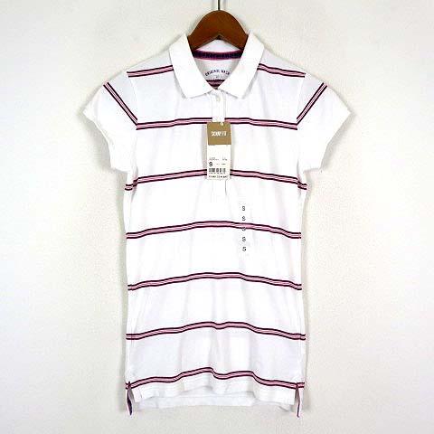 【中古】未使用品 ユニクロ UNIQLO ポロシャツ スキニー フィット ボーダー サーフカノコ コットン ストレッチ 半袖 S