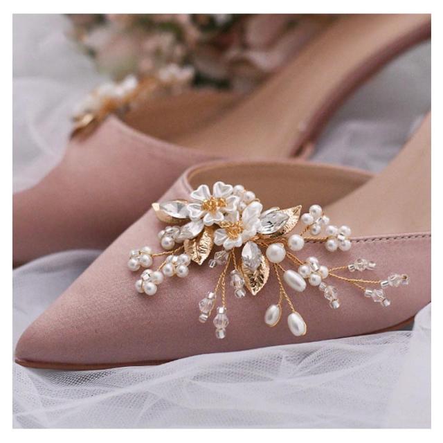 2個1組 シュークリップ 小枝 パール ビジュー キラキラ ゴールド シューズクリップ レディース 女性用 花嫁 小物 結婚式 パンプス 飾り 靴 シューズ アクセサリー かわいい おしゃれ ウェディング ウェディングシューズ 上品 高級感 【送無】