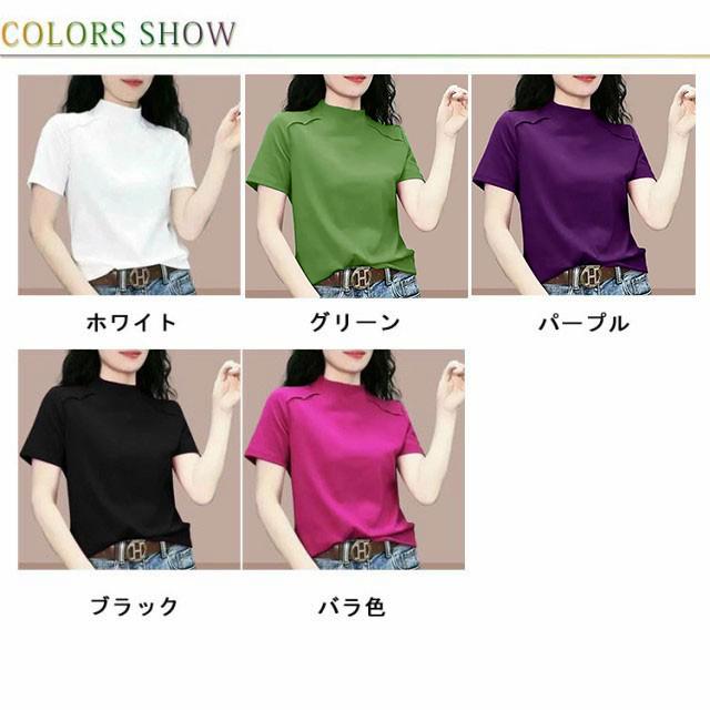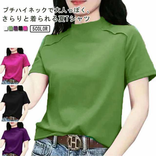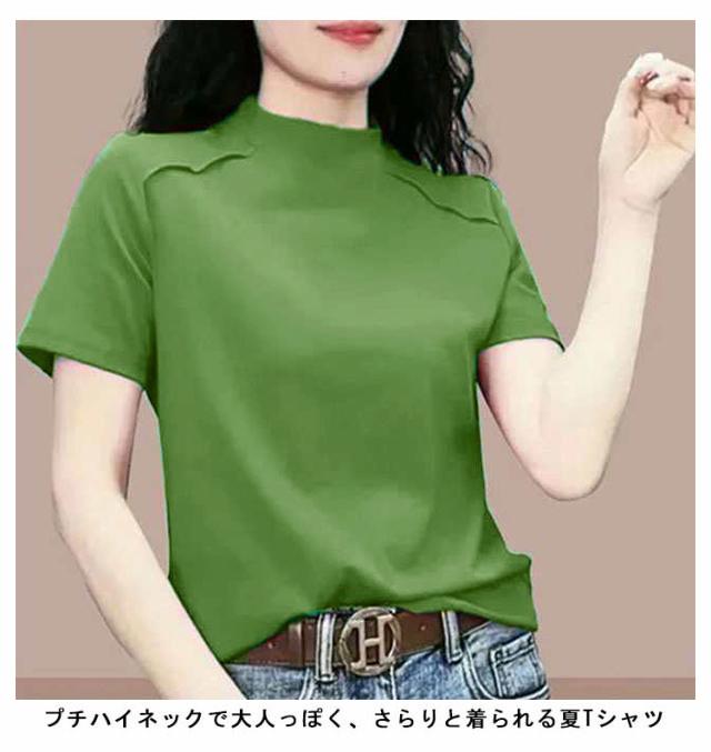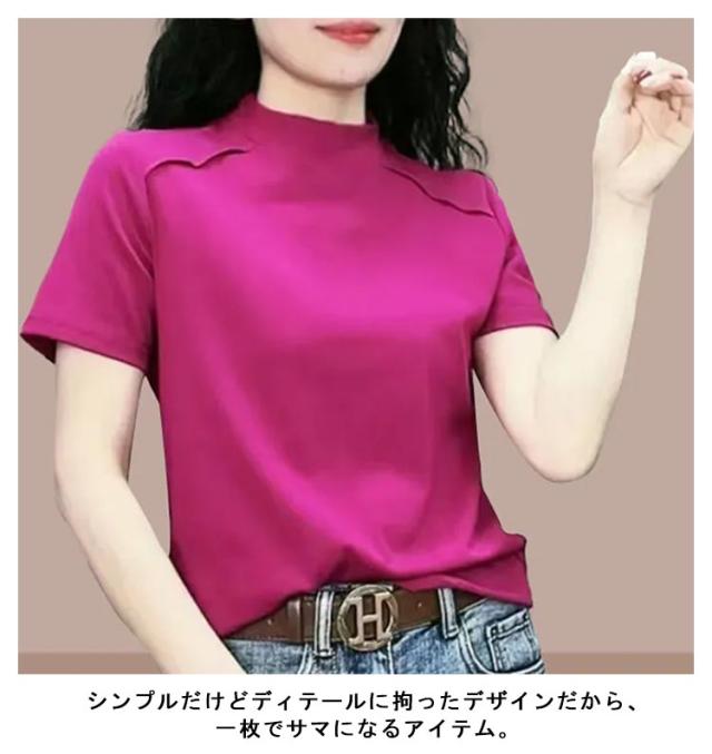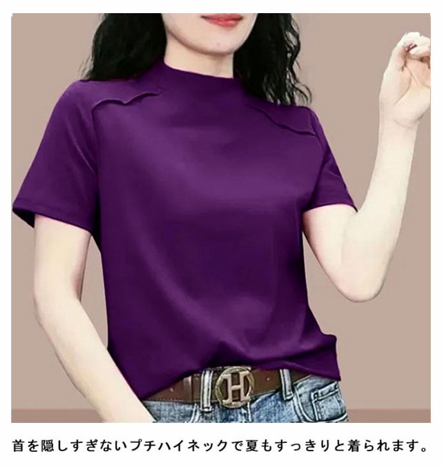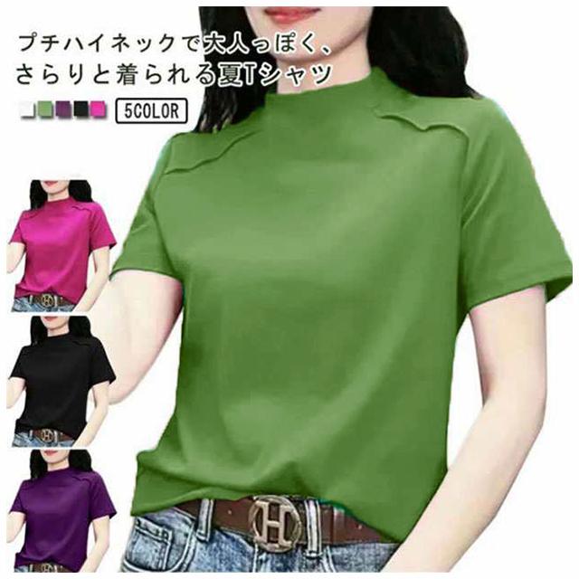 トップス Tシャツ カットソー 半袖 プチハイネック UVカット レディース 薄手 夏服 夏 ハイネック モックネック tシャツ ストレッチ 半袖tシャツ ゆったり 体型カバー 消臭 抗菌 吸汗 速乾 ブラウス 半袖ブラウス カジュアル 無地 シンプル 大人 おしゃれ 送料無料