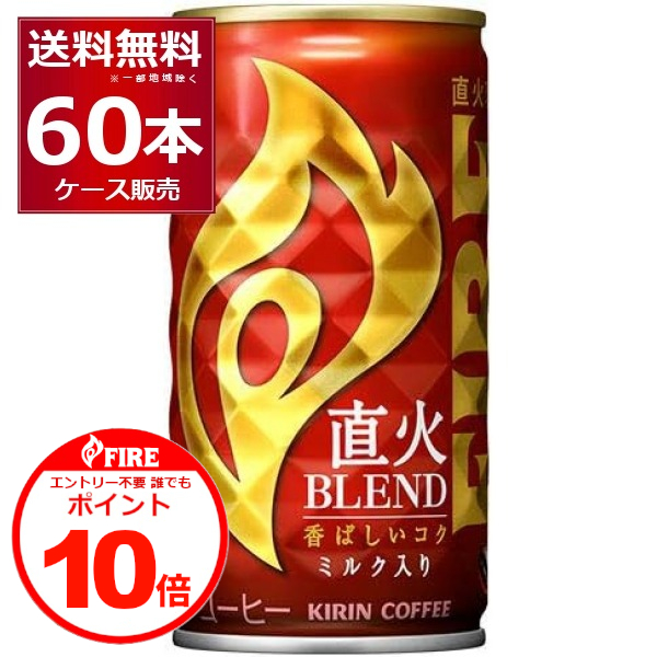 エントリー不要 誰でもP10倍 4/30 9:59まで 缶コーヒー 珈琲 送料無料 キリン 直火ブレンド 185ml×60本(2ケース)[送料無料※一部地域は除く]