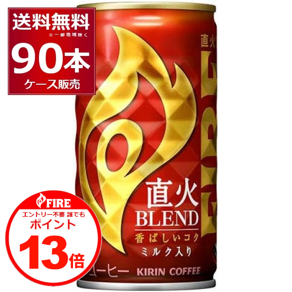 エントリー不要 誰でもP13倍 4/30 9:59まで 缶コーヒー 珈琲 送料無料 キリン 直火ブレンド 185ml×90本(3ケース)[送料無料※一部地域は除く]