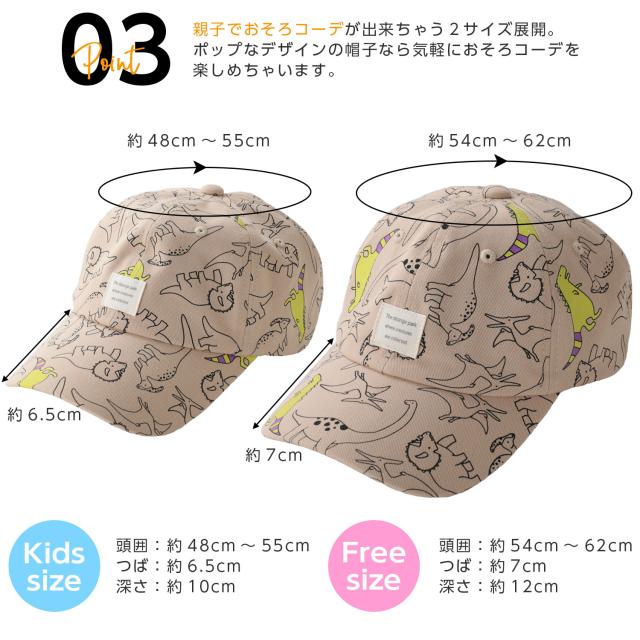 帽子 キャップ キッズ 男の子 女の子 親子 おそろい お揃い ペア 恐竜 動物 おしゃれ かわいい かっこいい シンプル 人気 メンズ レディース 大人 子供 子ども こども 小学生 家族 日除け 日よけ 日焼け 防止 春夏 秋冬 UV コットン 綿 アジャスター サイズ調整