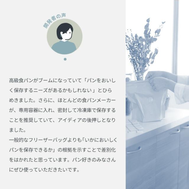 | 商品説明 | 軽創業1974年の歴史ある、パン・料理教室「ホームメイドクッキング」共同企画。 アルミを挟んだ三層構造で冷凍時の臭い移りや乾燥を防ぎ、パンをおいしく保存できます。 | |||||