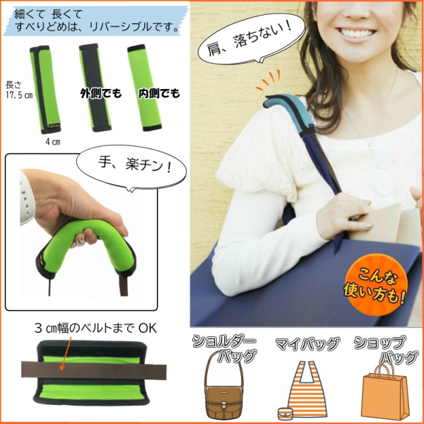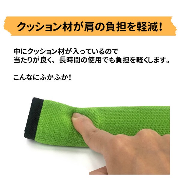 重い水筒や、ショルダーバッグの肩ひも(ベルト)に巻き付ける事で肩への負担をやわらげます。