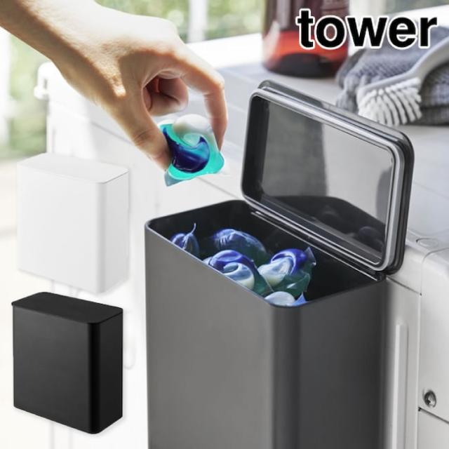 【NEW】tower マグネット洗濯洗剤ボールストッカー タワー山崎実業 タワーシリーズ マグネット 洗剤ボール ストッカー ホワイト ブラック 収納 洗濯機横 磁石 粉洗剤 ジェルボール ケース 洗【B倉庫】