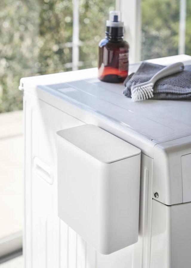 洗濯機の側面に磁石でピタっと付けるだけ。収納の少ないランドリー周りや、屋外洗濯機置き場のお家で収納にお困りの方にも。