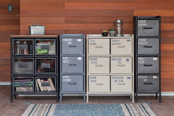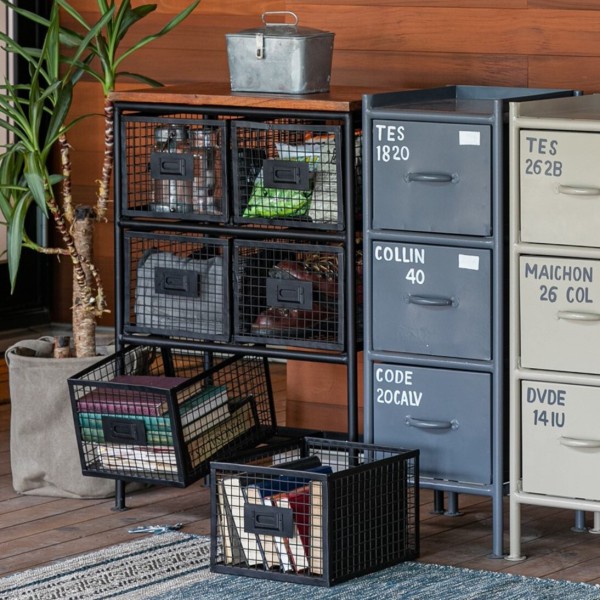 引き出しの箱は全てメッシュ仕様とし、見せる収納を実現。