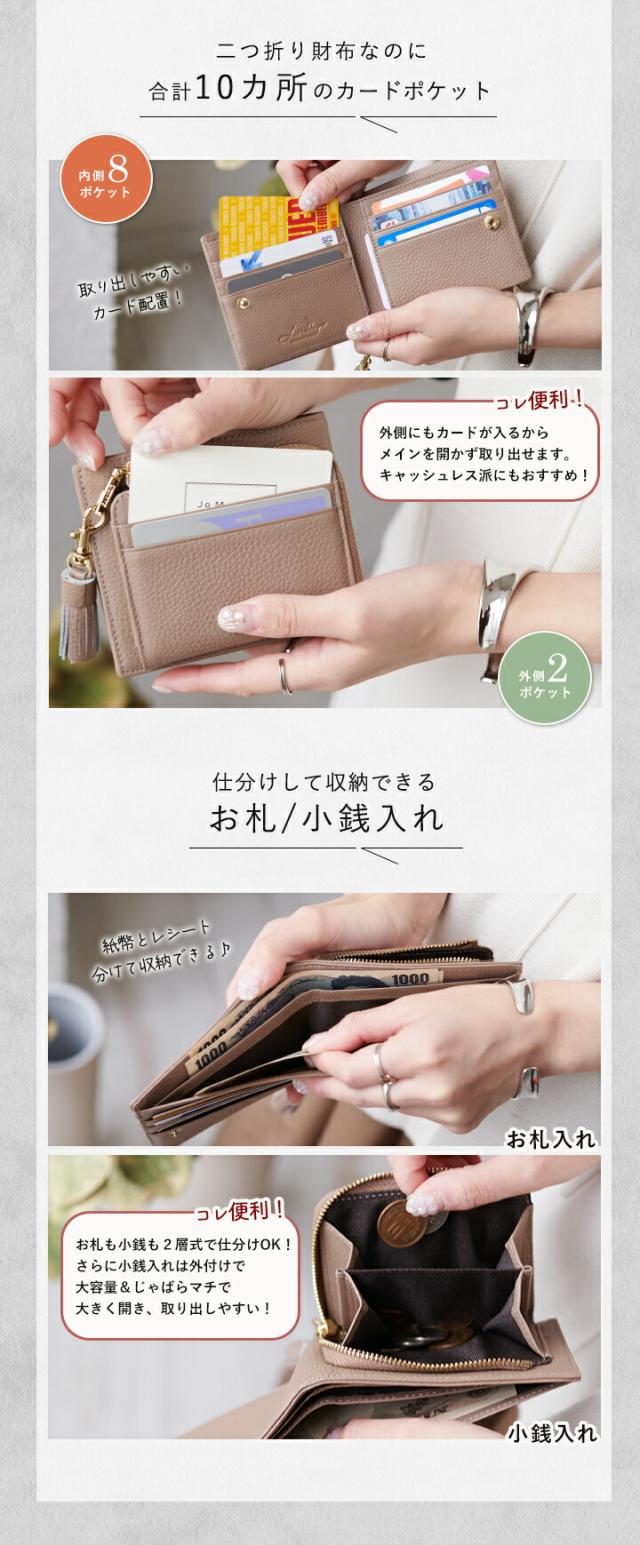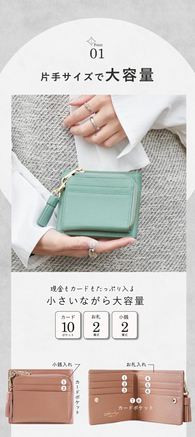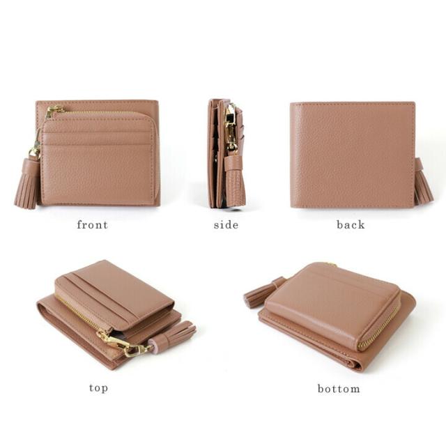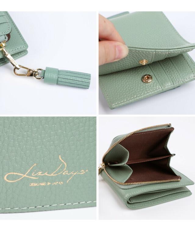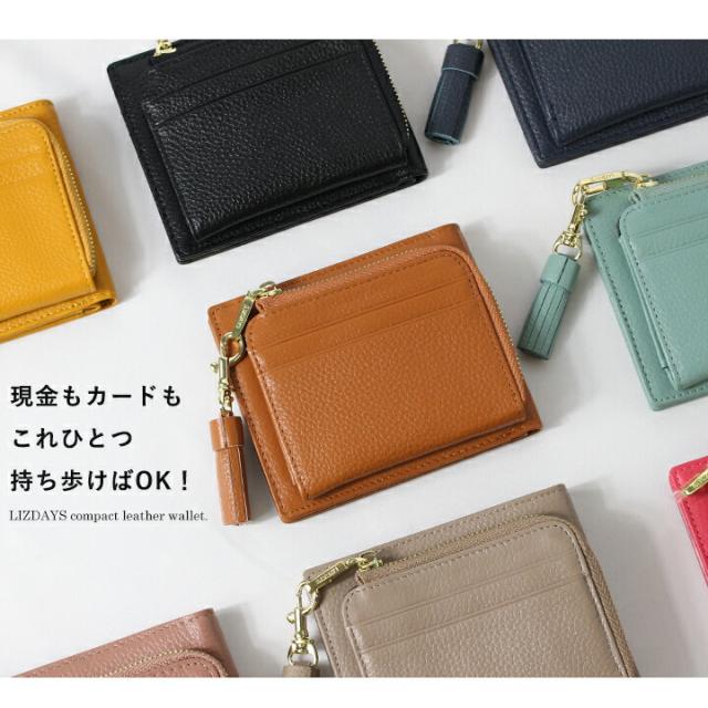 【メール便送料無料】財布 レディース 本革 二つ折り財布 【 LIZDAYS 】リズデイズ コンパクト財布 カードケース 小銭入れ 革 ミニサイズ レザー チャーム付き タッセルチャーム ギフト かわ【B倉庫】