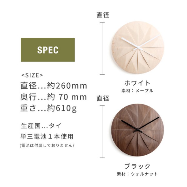 お部屋のインテリアに合わせて文字盤の色(ブラック・ホワイトの2色)をお選びください。