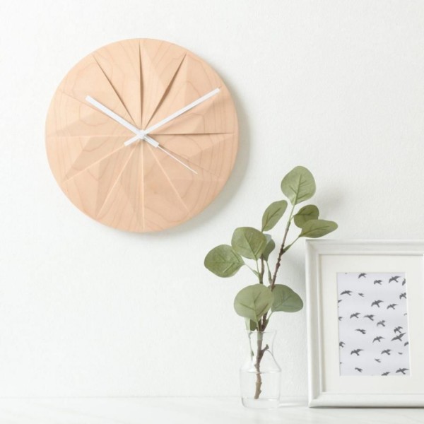 白または黒の文字盤を選択できる無垢のメープル材で作られています。