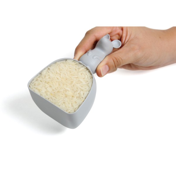 ねずみやうさぎのモチーフが持ち手になるのですくいやすく、米びつのなかで埋もれても見つけやすい。