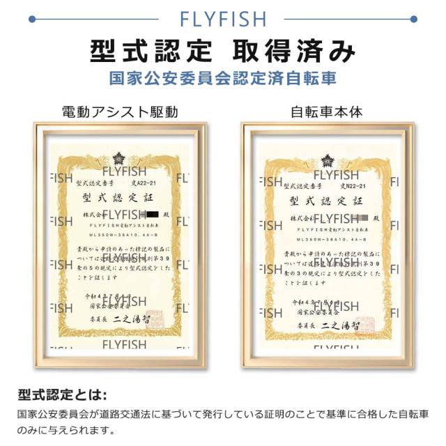 - 型式認定とは、道路交通法に適合し、国家公安委員会が定義した電動アシスト自転車の基準をクリアした商品に与えられる証明です。
