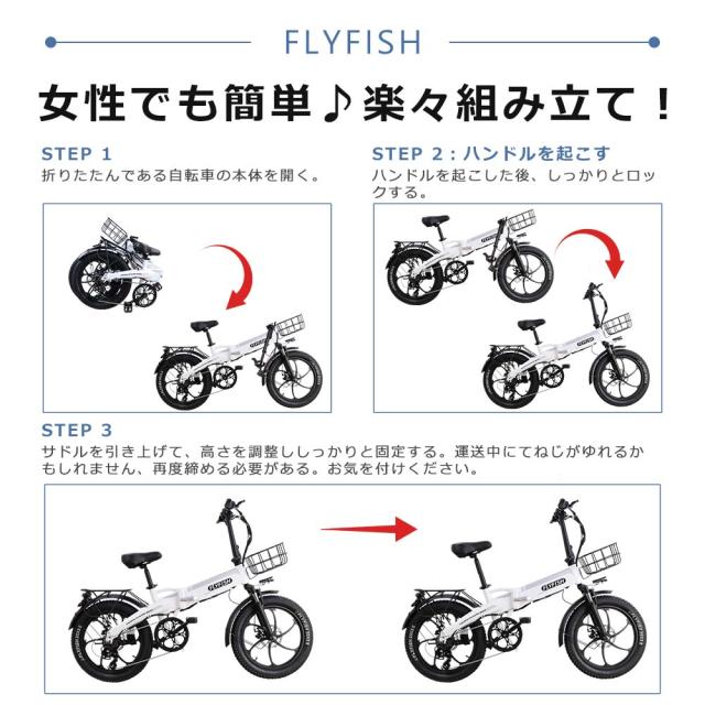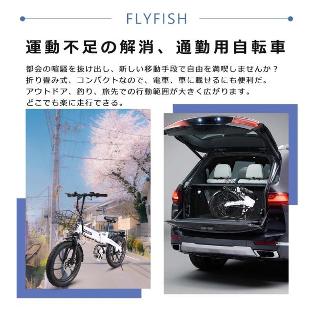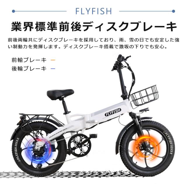【2025年モデル】型式認定 FLYFISH 電動アシスト自転車 折りたたみ 電動自転車 おしゃれ 免許不要 アシスト自転車 電動 自転車 折り畳み 公道走行可能 電動ファットバイク 20インチ 電動折りたたみ自転車 タイヤ 極太 カッコイイ自転車 街乗り シマノ変速防犯登録USB充電
