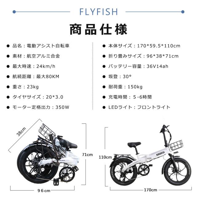 ○FLYFISH-電動アシスト自転車 20inch