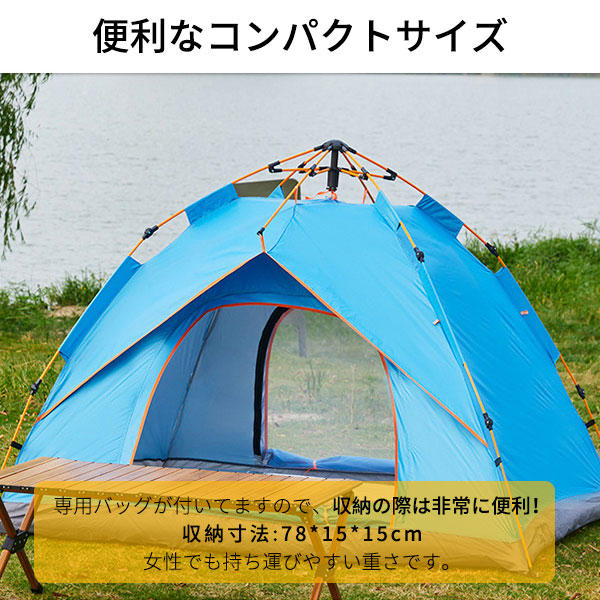 ポイント超超祭 テント 一人用 ワンタッチ 軽量 ポップアップテント おしゃれ 4人用 フルクローズ コンパクト ファミリー アウトドア 室内 公園 200cm 簡易